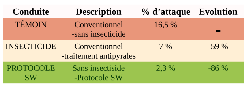 Conduite en conventionnel sans aucun insecticide + Protocole SW
