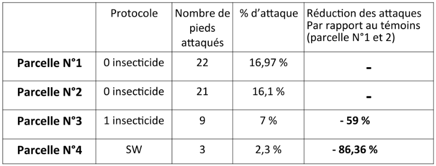 Grâce aux produits SW et sans insecticide, les transformations des sucres et acides aminés ont permis de rendre beaucoup moins appétant les pieds de maïs pour les ravageurs.